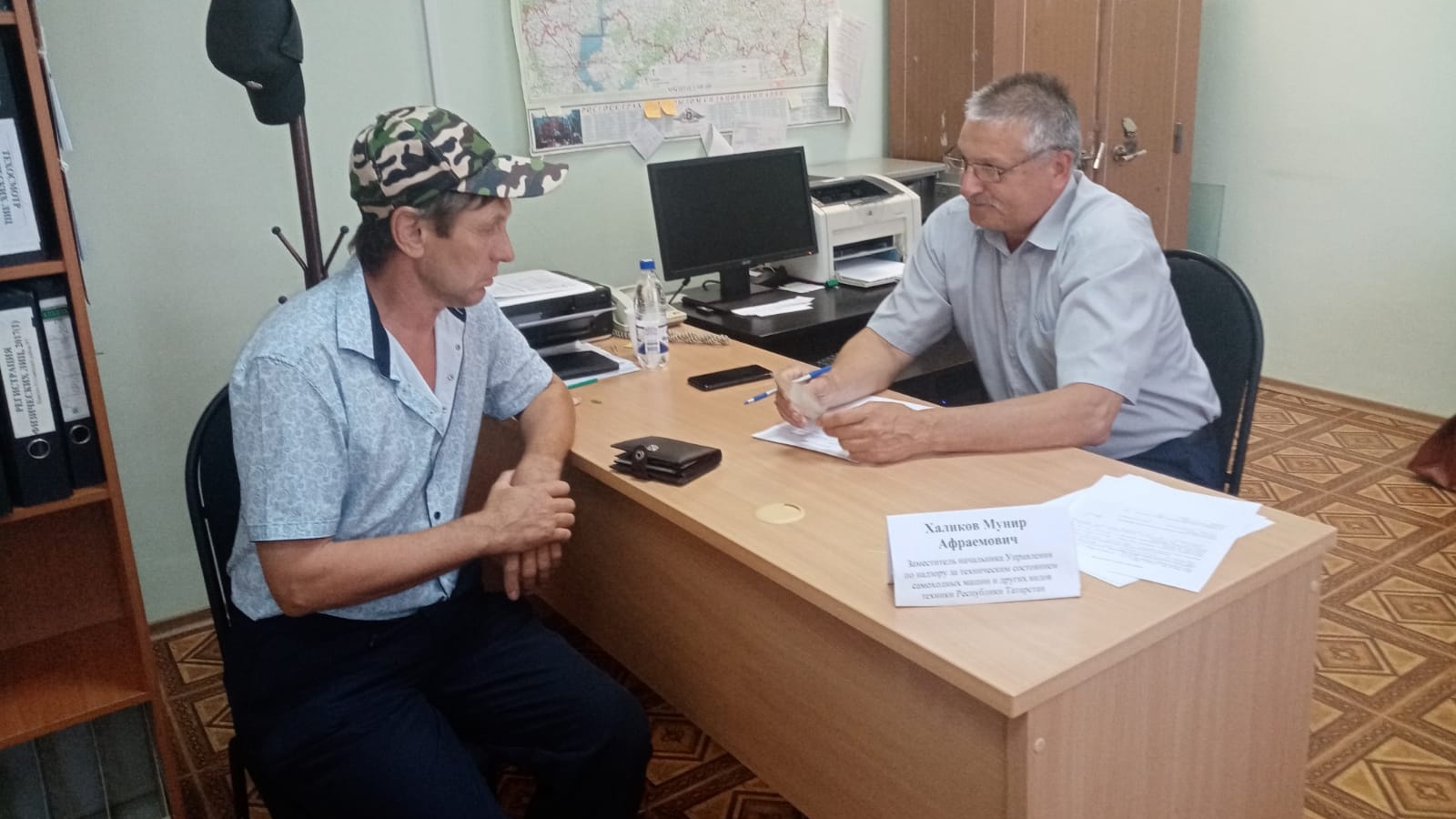 В соответствии с графиком выездных приемов, утвержденнsv Управлением Гостехнадзора Республики Татарстан, 02 августа 2022 года в отделе Гостехнадзора Республики Татарстан по Камско-Устьинскому муниципальному району заместитель начальника Управления Гостехнадзора Республики Татарстан Мунир Афраемович Халиков провел личный прием граждан, представителей юридических лиц и других форм образований.