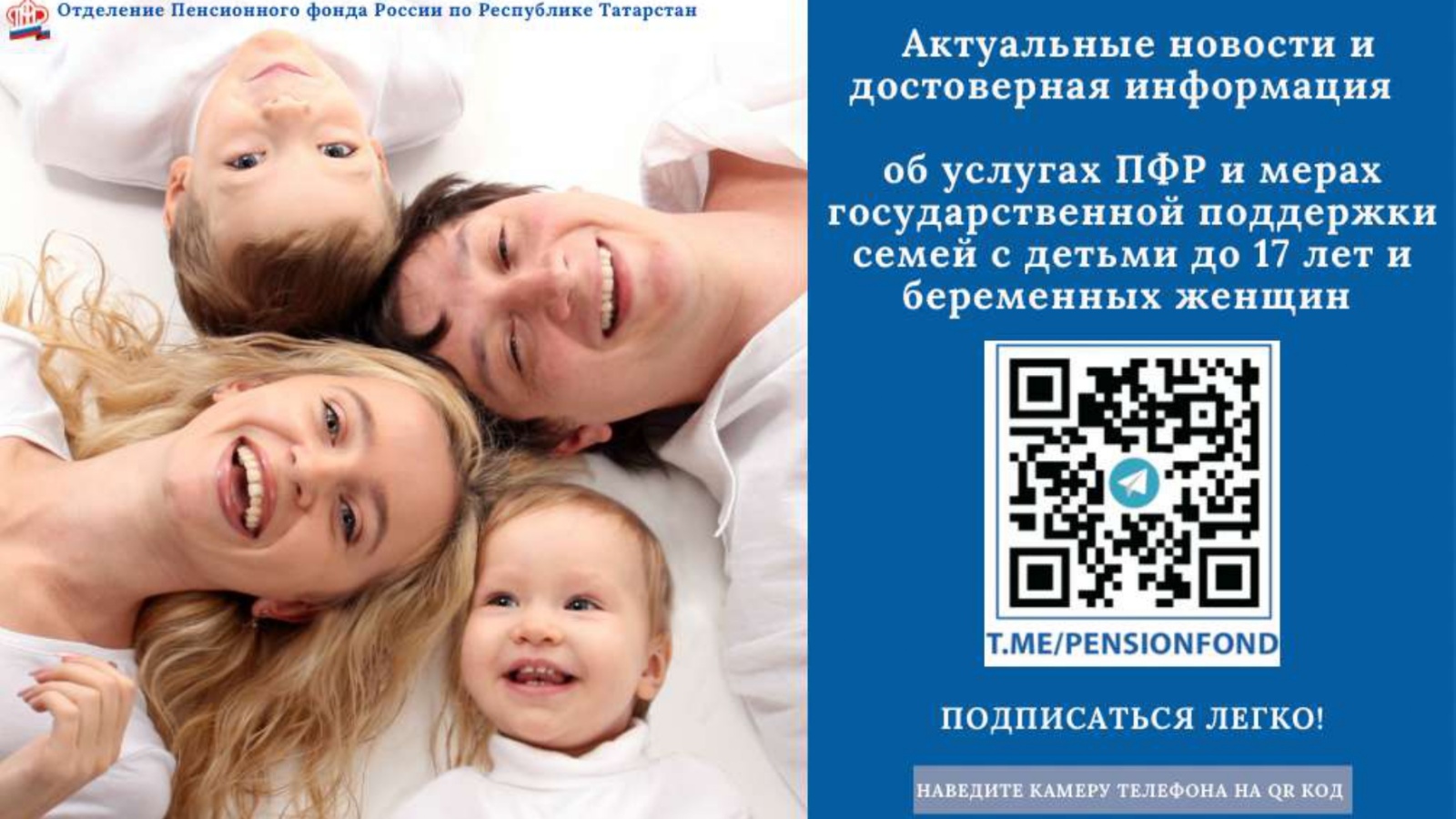 В настоящее время Отделением Пенсионного фонда России по Республике Татарстан проводится широкомасштабная разъяснительная работа об универсальном пособии семьям с детьми до 17 лет и беременным женщинам.