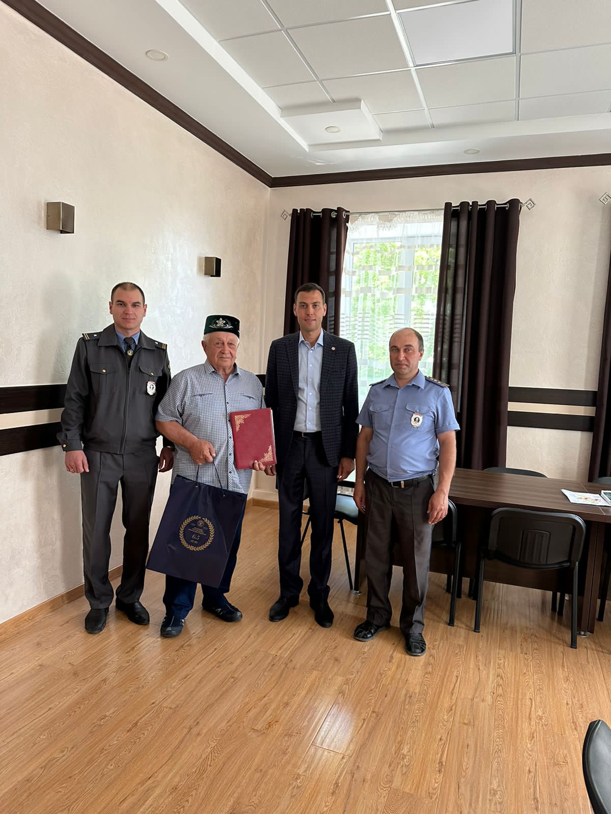 Также Альберт Бурганов и ведущий специалист отдела экономического анализа, обеспечения деятельности государственных закупок Ильнур Залалетдинов встретились с ветераном службы Гостехнадзора Галимовым Салихом Шагитовичем и поздравили его с юбилейным днем рождения, вручив ему памятный подарок.