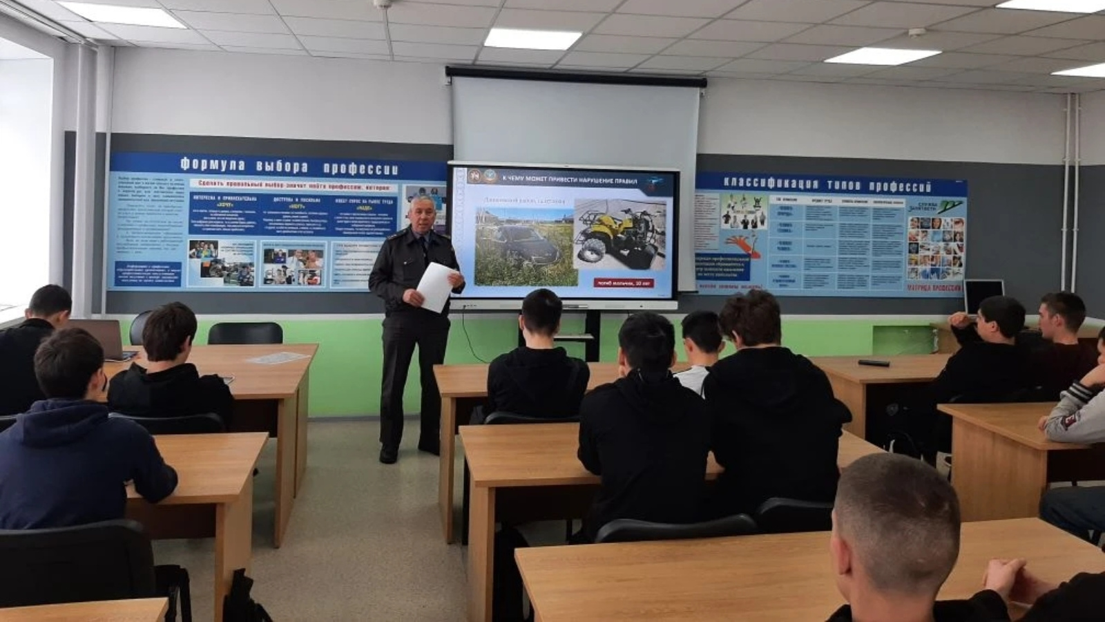 В Муслюмовском политехническом техникуме прошел «Урок безопасности». Урок по безопасности при эксплуатации и вождении снегоходов провел начальник отдела Гостехнадзора РТ по Муслюмовскому муниципальному району Кирамов Р.И. Студенты ознакомились с порядком получения удостоверения на право управления снегоходом. Инспектор привел статистику происшествий по стране, связанных со снегоходами, а также ознакомил с тем, что грозит нарушителям правил и требований.