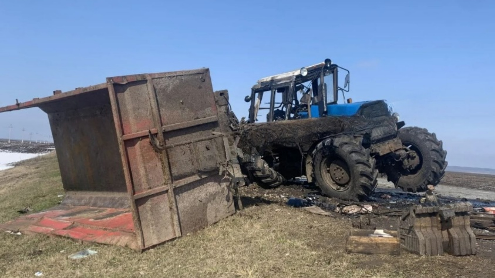 По предварительным данным, водитель отечественного автомобиля, двигавшийся с превышением скорости, не справился с управлением и врезался в движущийся впереди трактор марки «Беларус». От сильного удара сельскохозяйственная техника опрокинулась, а легковой автомобиль, получивший критические повреждения, вылетел в кювет.