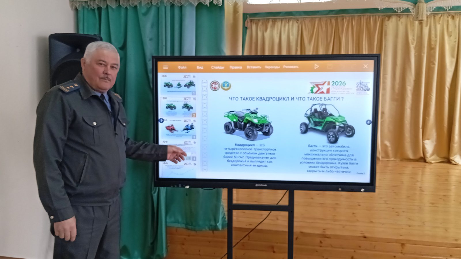 22 апреля 2026 года с целью профилактики несчастных случаев при управлении квадроциклами в МБОУ Шушмабашской средней общеобразовательной школе был проведен «Урок безопасности» на тему: «Внедорожные мототранспортные средства» с участием начальника отдела Гостехнадзора РТ по Арскому муниципальному району Касимовым Г.Г. Ученики ознакомились с требованиями по соблюдению техники безопасности и обязательных требований по правилам безопасной эксплуатации внедорожных мототранспортных средств и использования средств защиты, а также о мерах наказания за нарушение правил эксплуатации. Была приведена статистика происшествий с участием квадроциклов в Республике Татарстан за последние годы, также были даны подробные ответы на интересующие вопросы.